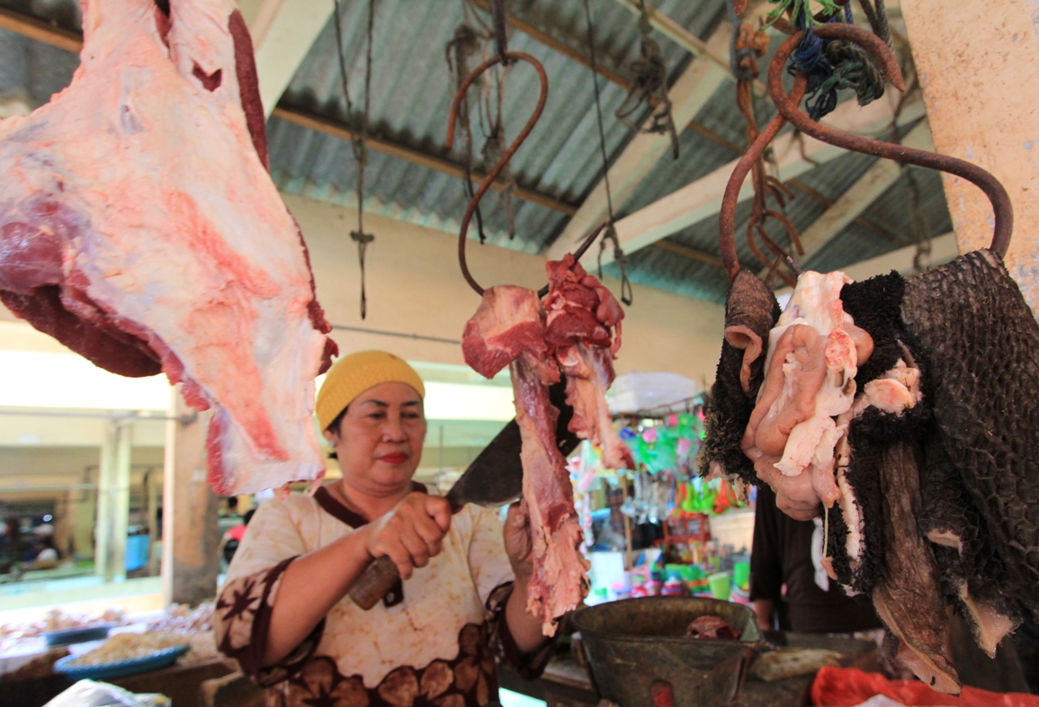 “Daging glonggongan kalau digantung pasti akan meneteskan air. Tapi kalau daging segar tidak,” terang Faizah sembari menunjukan ciri-ciri daging segar.