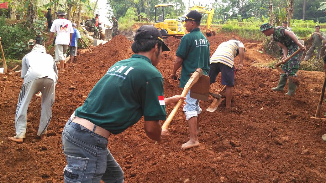 Anggota LGMI Jepara terlihat sedang membantu petugas TNI dalam melaksanakan program TMMD Reg 97 Kodim 0719 Jepara [KlikFakta.com/017] |