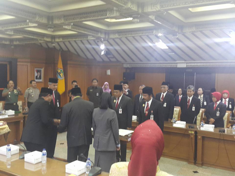 | Prosesi pengukuhan plt Bupati Jepara dan Brebes oleh Gubernur Jawa Tengah Ganjar Pranowo. [klikFakta.com/istimewa] |