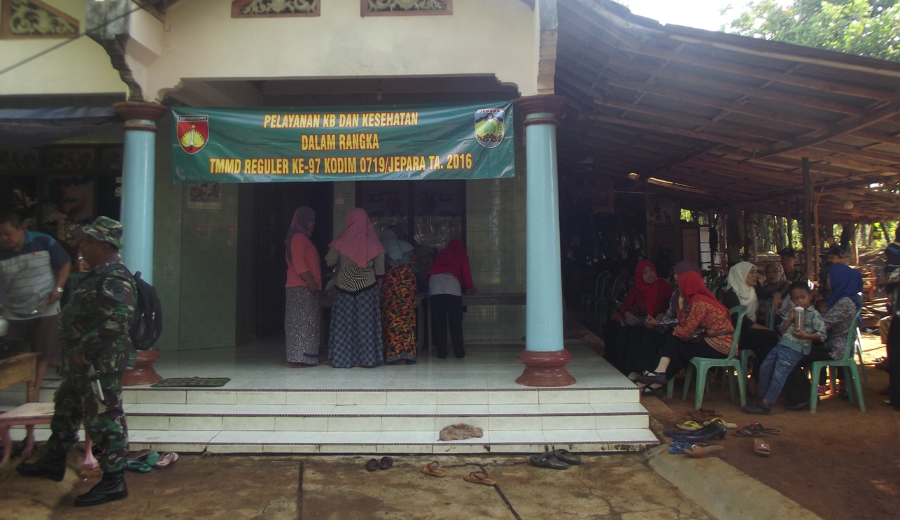 Dalam pembukaan TMMD Reg 97 dilapangan di Desa Bantrung Kecamatan Batealit Kabupaten Jepara kemarin, Kodim 0719/Jepara menggandeng BKKBN Kabupaten Jepara untuk bekerja sama melaksanakan bakti sosial membuka pelayanan KB gratis kepada warga Bringin dan sekitarnya terutama pada Ibu-ibu pasang usia subur(PUS) baru dengan menggunakan MKJP.