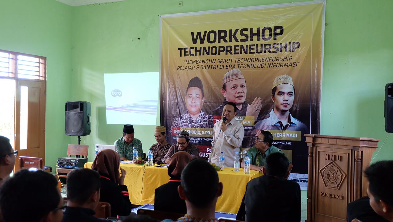 Antusiasme peserta: Hasan Chabibie (dua dari kanan) saat sedang menyampaikan materi Workshop Technopreneurship di Ponpes Al Islah, Kadilangu, Trangkil, Pati, Sabtu (26/08/2017) |