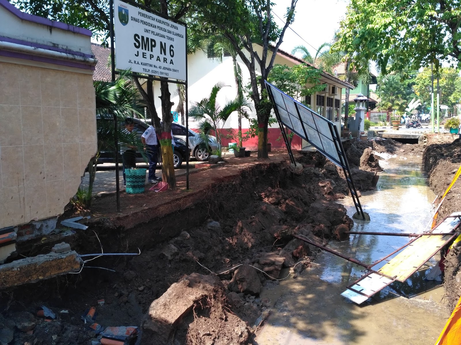 klikfakta.com, JEPARA – Proyek peningkatan dan penataan jalan RA Kartini yang menelan anggaran mencapai Rp 8,4 Miliar membahayakan siswa di SMP Negeri 6 Jepara. Pasalnya, proses pengerukan aliran air di pinggir jalan mengakibatkan pagar sekolah rusak dan sebagian tanah ambles.