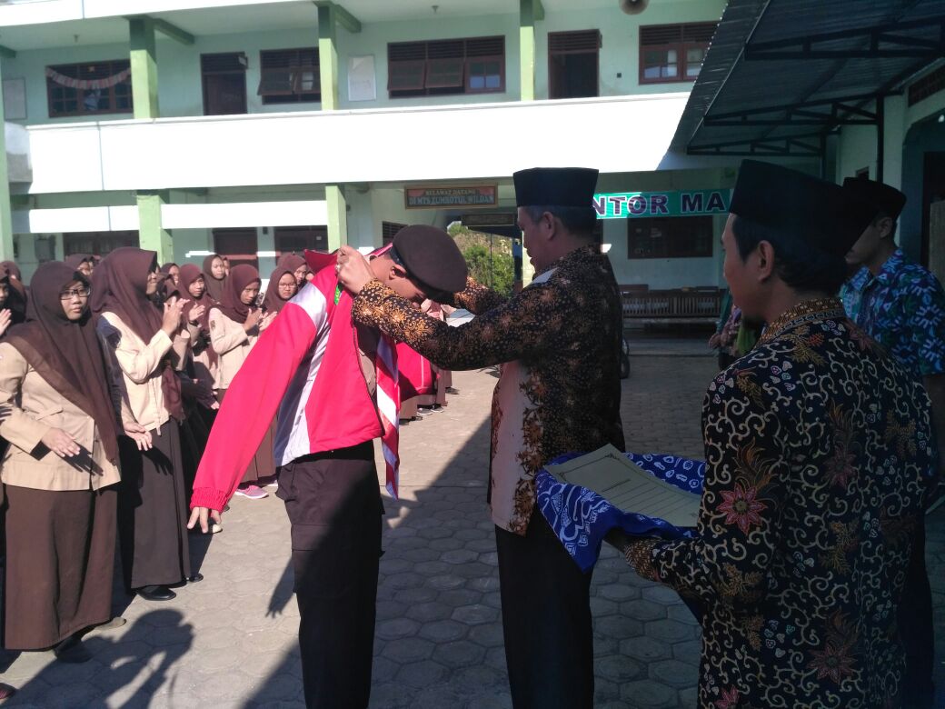 | Kepala MA Zumrotul Wildan, Nur Kholis melepas M Ferry Nugroho sebelum berangkat mengikuti Perwimanas. (KF-089 |