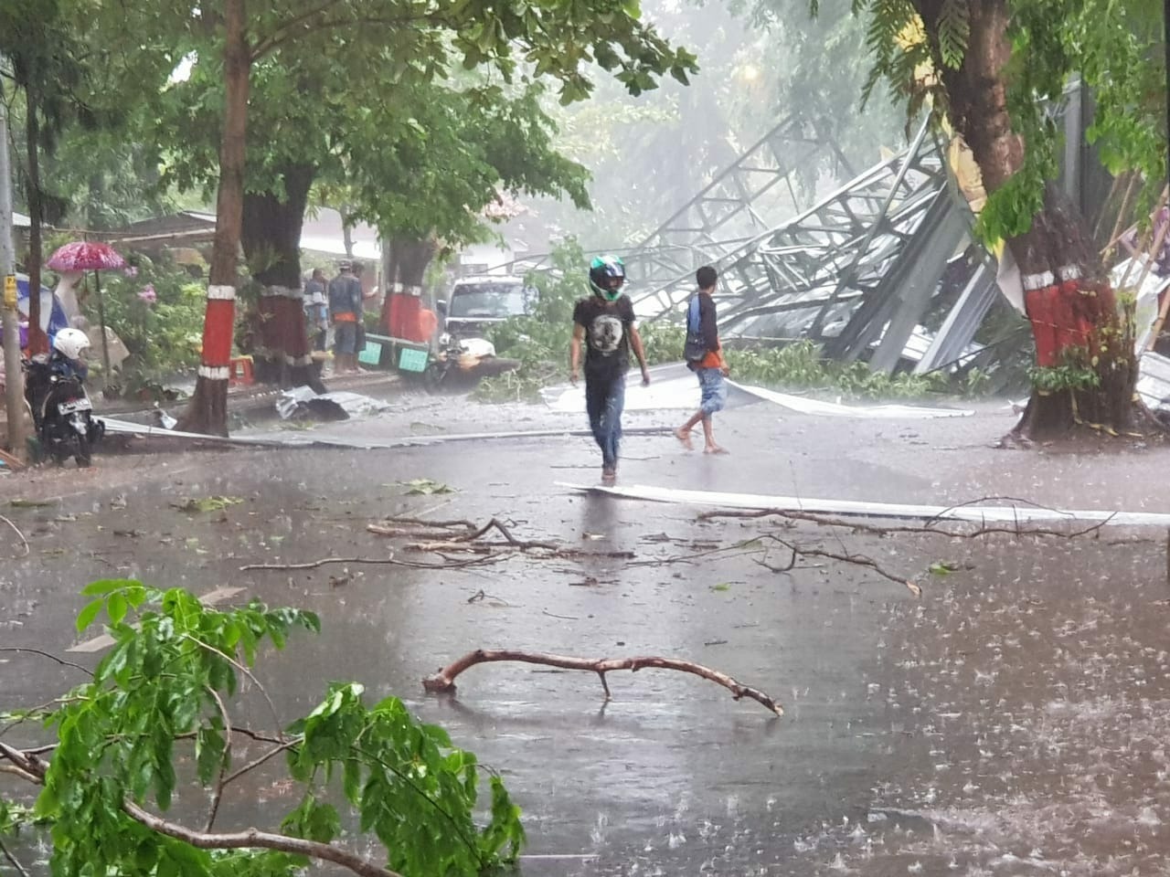“Atap tribun sebelah utara tiba-tiba ambruk saat hujan disertai angin,” ujar Ahmad, salah satu mandor bangunan.