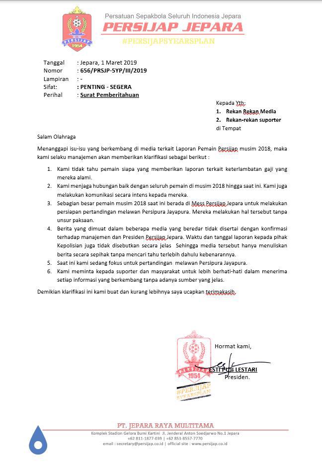 “Kami tidak tahu pemain siapa yang memberikan laporan terkait keterlambatan gaji yang mereka alami,” kutipan poin satu dalam rilisnya.