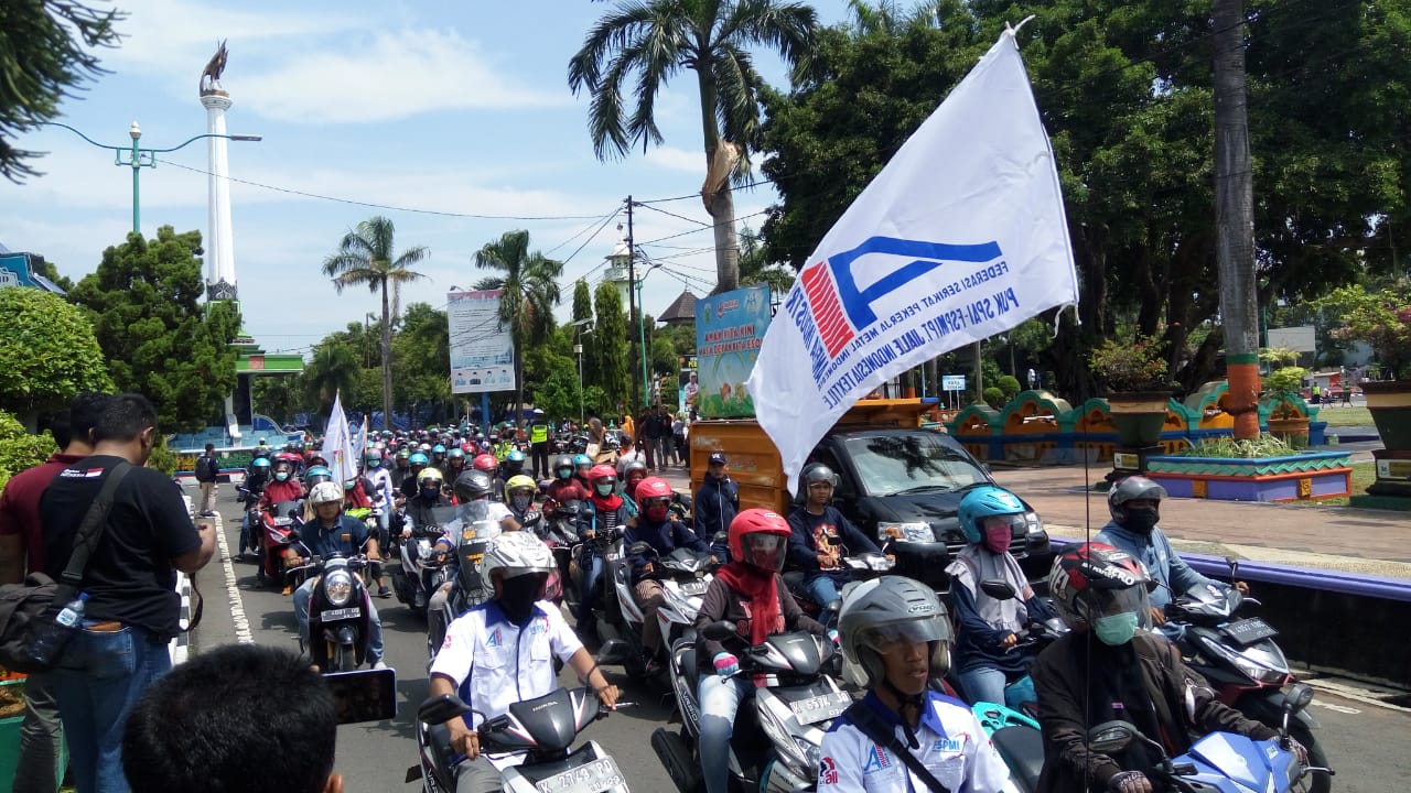 Federasi Serikat Pekerja Metal Indonesia (FSPMI) konvoi menuju kantor Bupati Jepara. (KF-Ali) |
