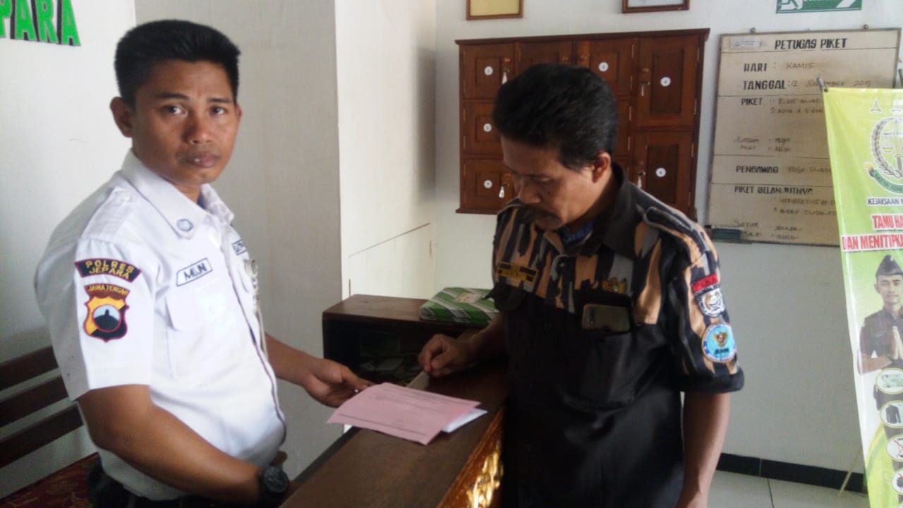 Ketua Pekat IB, Priyo H mengirim surat pencabutan laporan di kantor Kejari Jepara. (KF-doc.) |