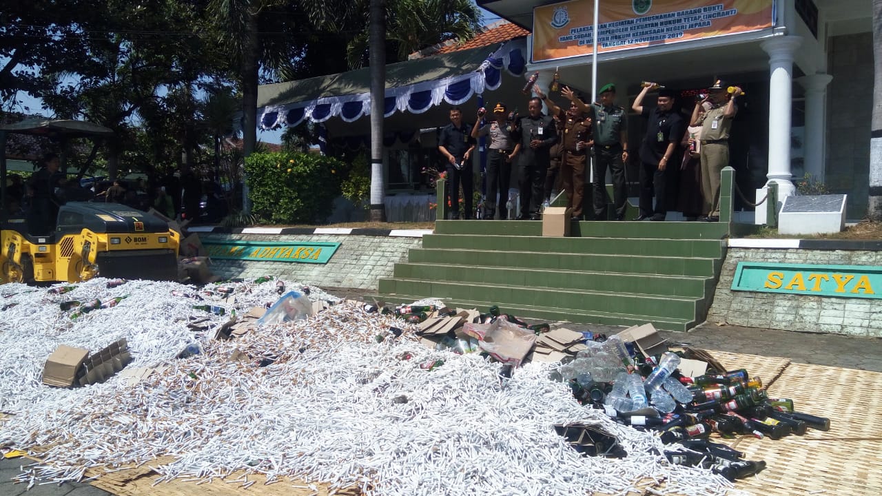 Pemusnahan barang bukti miras, narkotika dan rokok ilegal di halaman Kantor kejaksaan Negeri Jepara (KF.Ali).