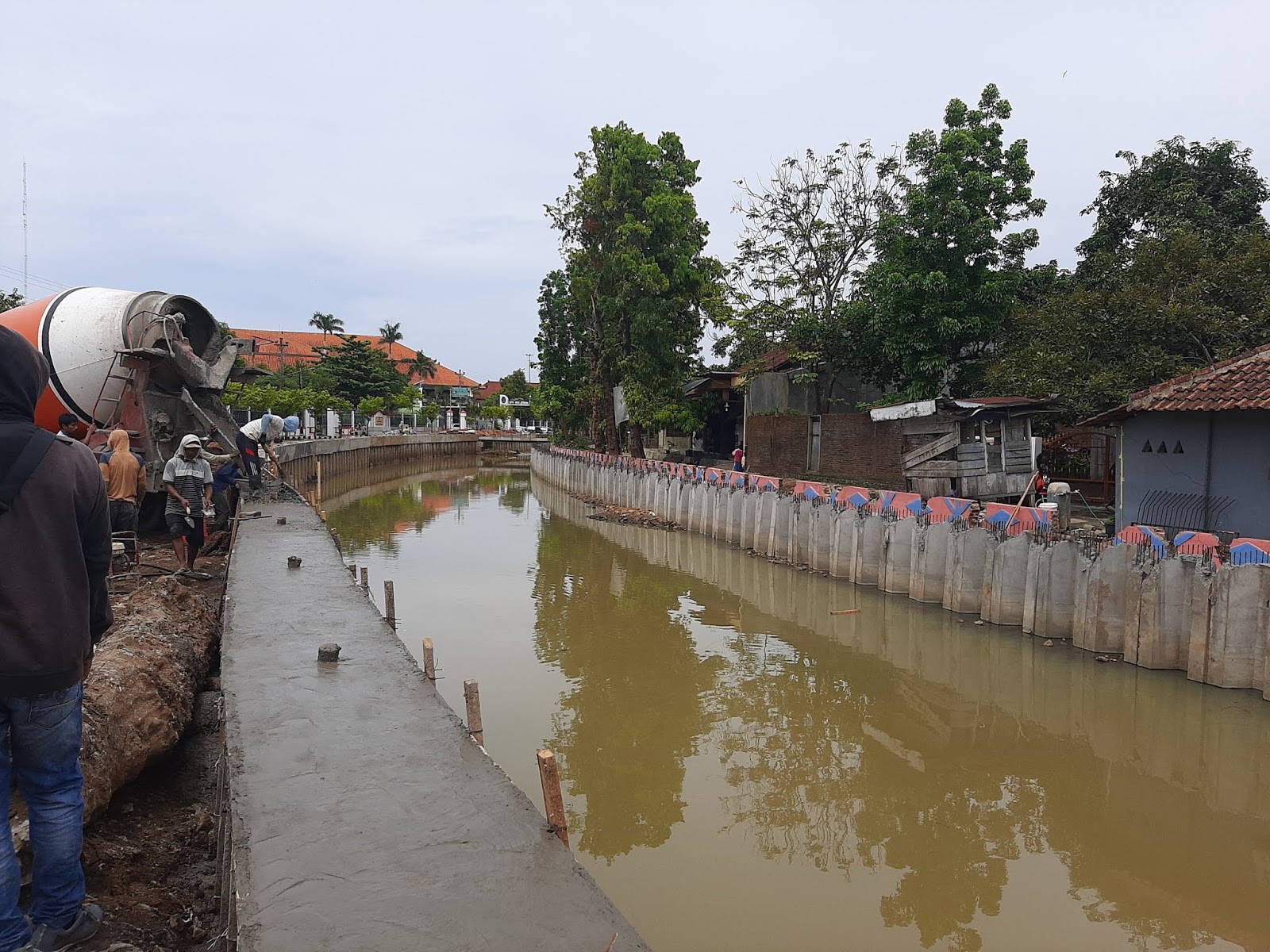 Sejumlah pekerja melakukan pengecoran proyek pengendalian banjir sungai kaliwiso Jepara (KF.Ali) |