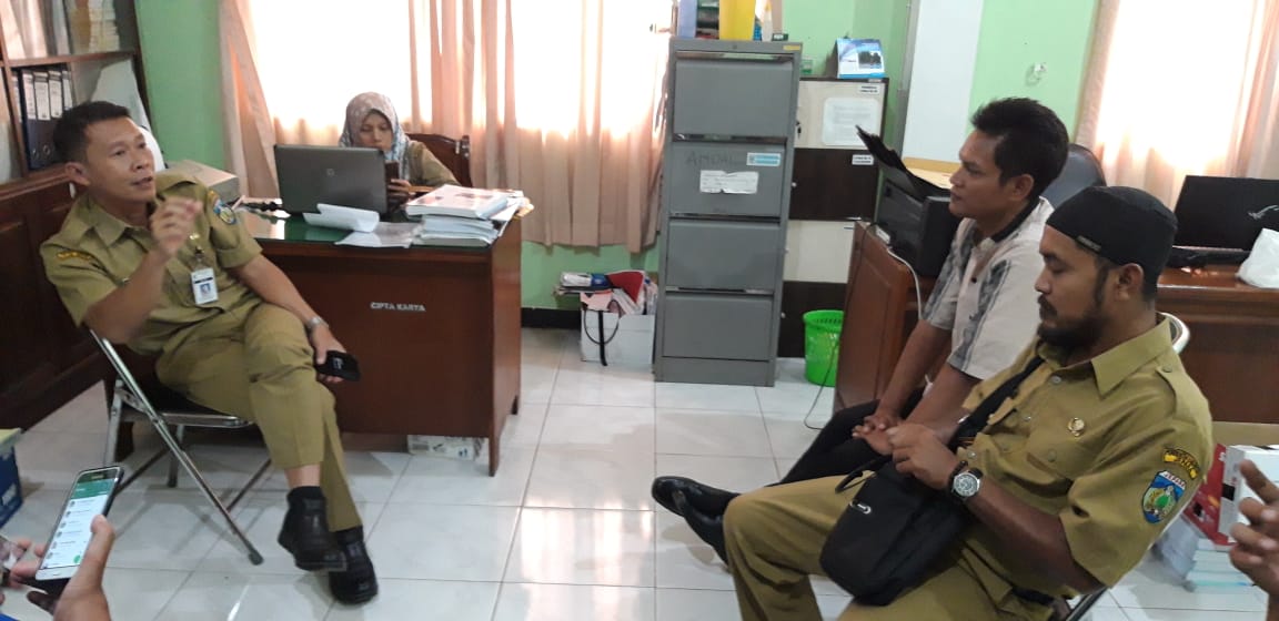 Petinggi Desa Pelang Abdu Rojab didampingi BPD, berdiskusi dengan DLH Jepara terkait keberadaan pabrik yang tak berizin. (KF.Aris). |