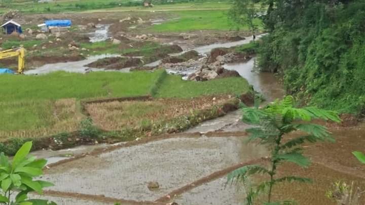“Petani mintanya dibeton agar tidak jebol lagi, saya sudah mengutus ladu desa untuk bicara dengan penanggung jawab pertambangan tersebut, namun pengusaha tambang tidak mau, katanya jika yang dirusak bangunan mereka akan mengganti bangunan, karena yang jebol tanggul tanah ya mereka hanya akan menutupnya kembali dengan tanah” ujarnya.