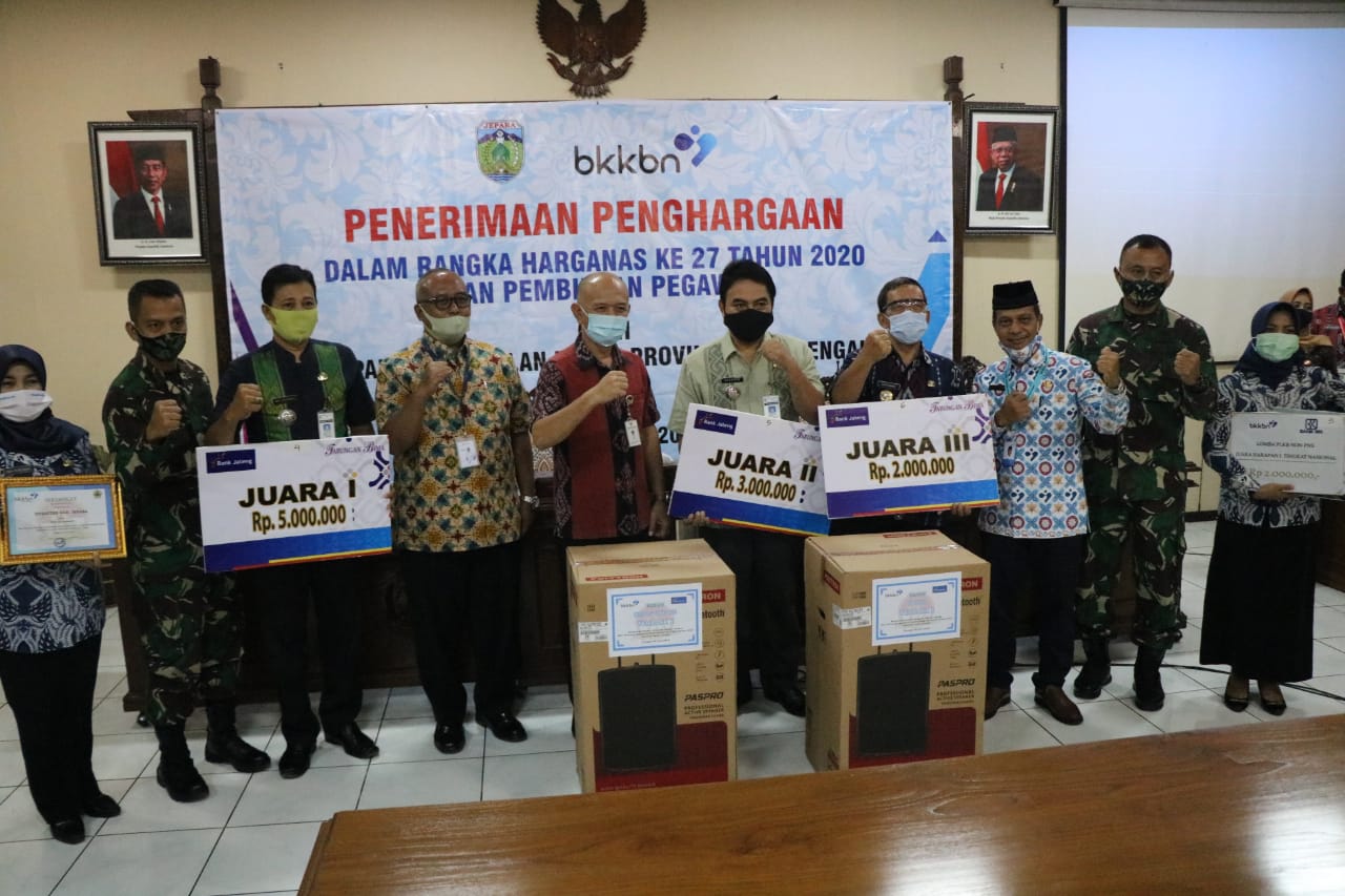 Penghargaan diterima langsung dari Kepala Perwakilan Badan Kependudukan dan Keluarga Berencana Nasional (BKKBN) Provinsi Jawa Tengah Martin Suanta, kepada Bupati Jepara Dian Kristiandi, didampingi Kepala DP3AP2KB Jepara Inah Nuroniah, pada Rabu (22/7/2020), di Gedung Sosrokartono, Kantor Setda Jepara.