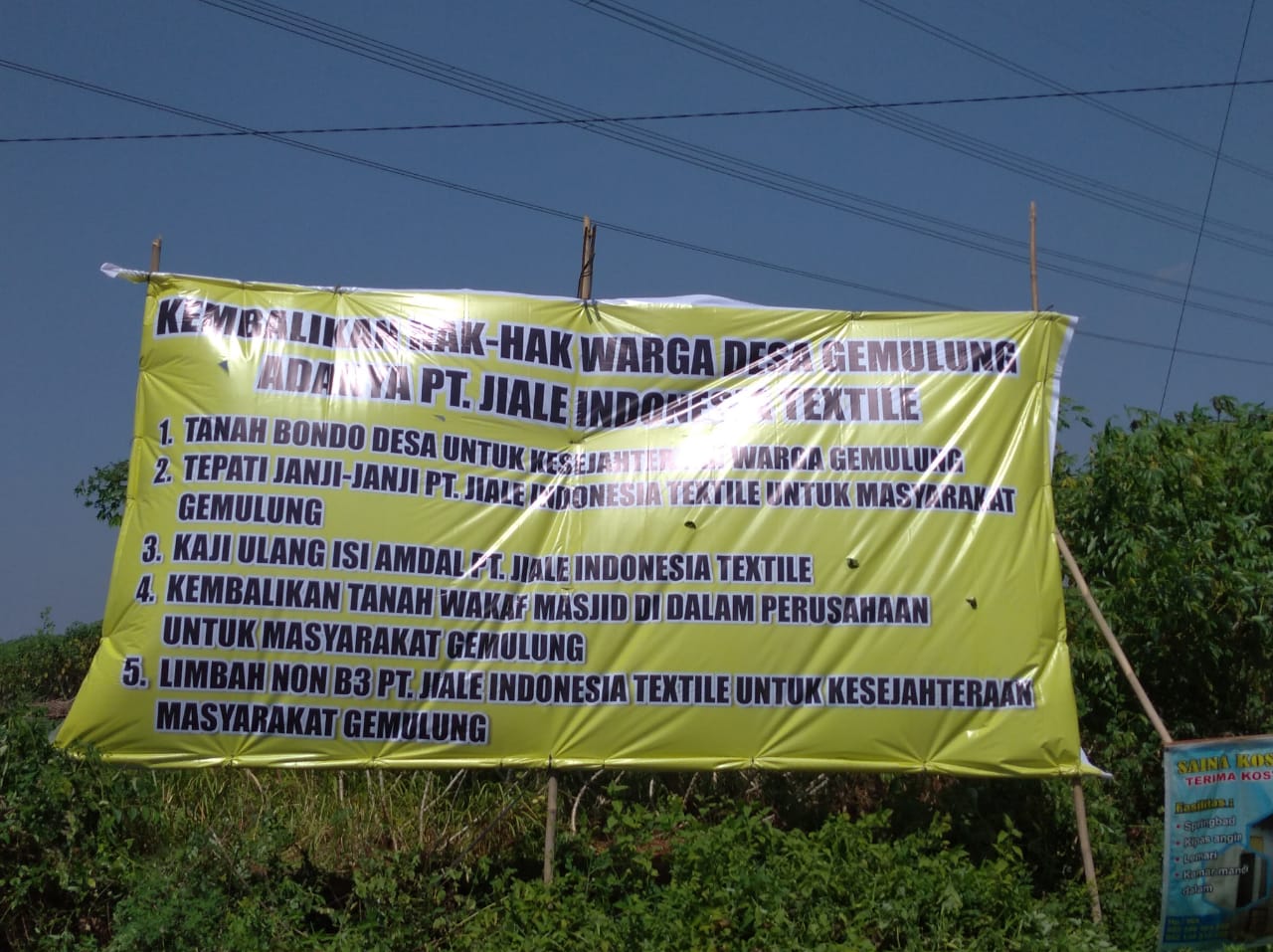 Protes PT. Jiale, Masyarakat Peduli Lingkungan Gemulung Pasang Spanduk