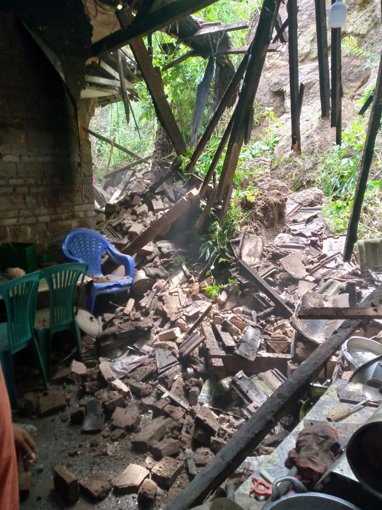 “Bagian belakang rumah korban mengalami kerusakan berat. Dimana dinding kamar dan atap dapur roboh tertimpa material longsor. Beruntung tidak ada korban jiwa dalam kejadian ini,” jelasnya.