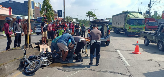 KlikFakta.com, KUDUS – Kecelakaan lalu lintas (Laka lantas) terjadi di ruas Jalan Lingkar Timur turut Desa Ngembal Kulon, Kecamatan Jati, Kudus, Jawa Tengah, Selasa (23/3/2021). Akibatnya, pengendara sepeda motor Suzuki Thunder yang di kendarai pria (49) meninggal dunia dalam kecelakaan itu.