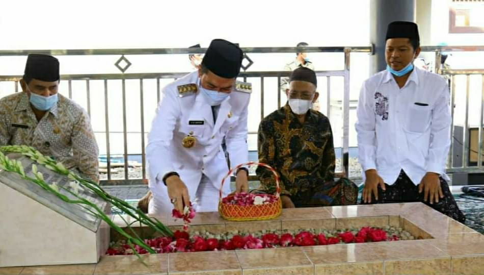 | Usai dilantik jadi Bupati Kudus Hartopo berziarah ke makam mantan bupati kudus yang berada di belakang masjid angung (foto : istimewa) |