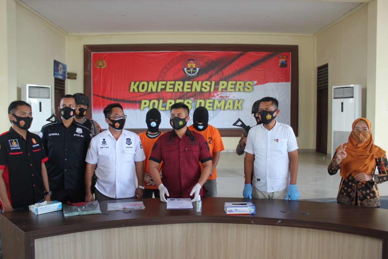 KlikFakta.com, Demak – Satreskrim Polres Demak berhasil meringkus dua pelaku pencurian dengan modus memecahkan kaca mobil berinisial ADS dan MH.