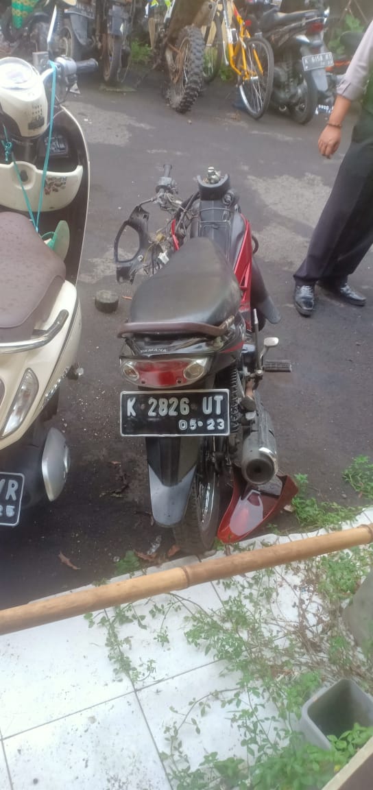 | Sepeda motor vega mengalami ringsek berat dibagian depan |