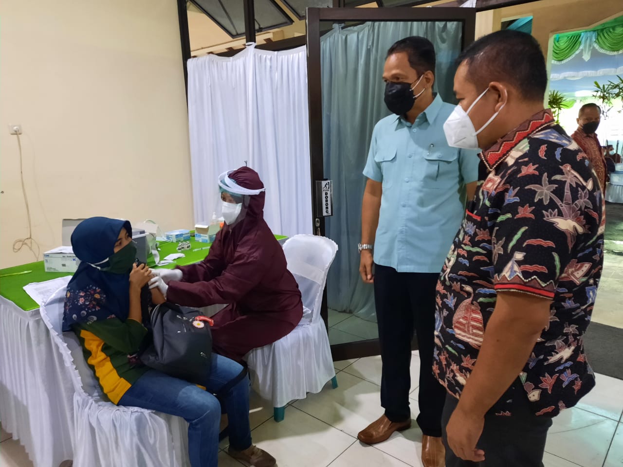 | Kujungan Ketua DPRD Kudus Masan ke Pura Group yang sedang melakukan vaksinasi |