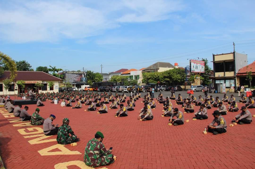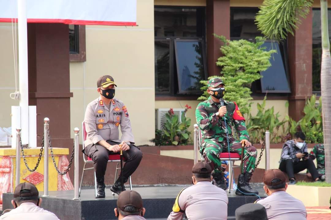 KlikFakta.com, Jepara – Kapolres Jepara AKBP Aris Tri Yunarko, dan Dandim 0719 Jepara Letkol Arh Tri Yudhi Herlambang memerintahkan kepada Babinsa dan Babinkamtibmas dalam upaya optimalisasi PPKM skala mikro dalam rangka penanggulangan pandemi Covid 19 di kabupaten Jepara. Hal ini diungkapkan keduanya saat apel di Mapolres jepara Senin 21 Juni 2021.