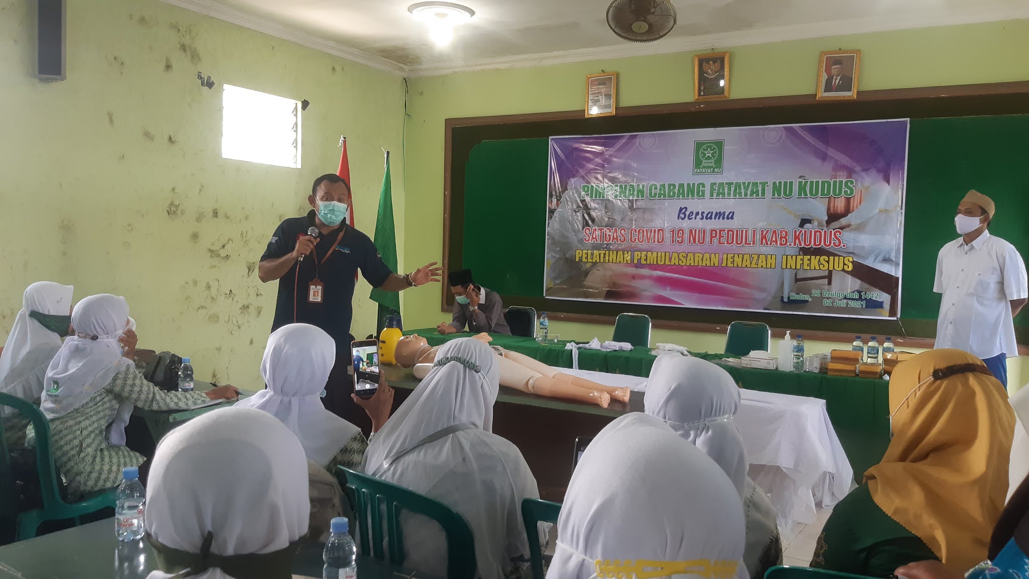 KlikFakta.com, KUDUS – Ratusan ibuk-ibuk mengikuti pelatihan pemulasaran jenazah infeksius yang digelar Pimpinan Cabang (PC) Fatayat NU Kudus, di Aula Gedung PC NU di Jalan Pramuka Wergu Wetan, Kecamatan Kota, Kudus, Jumat (2/7/2021).