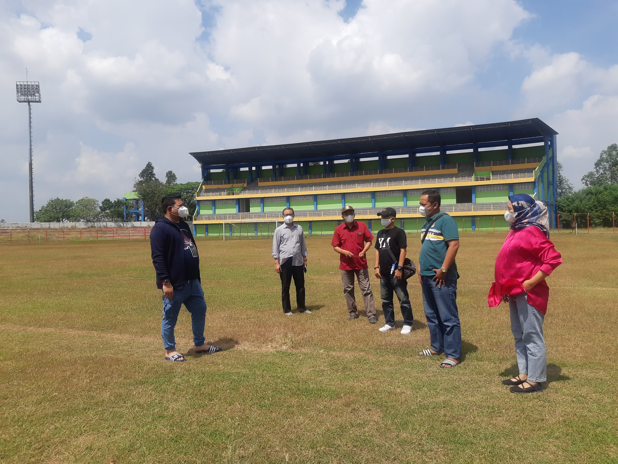 | Manajer Persiku meninjau lapangan Stadion Wergu Wetan bersana jajarannya (foto : ra) |