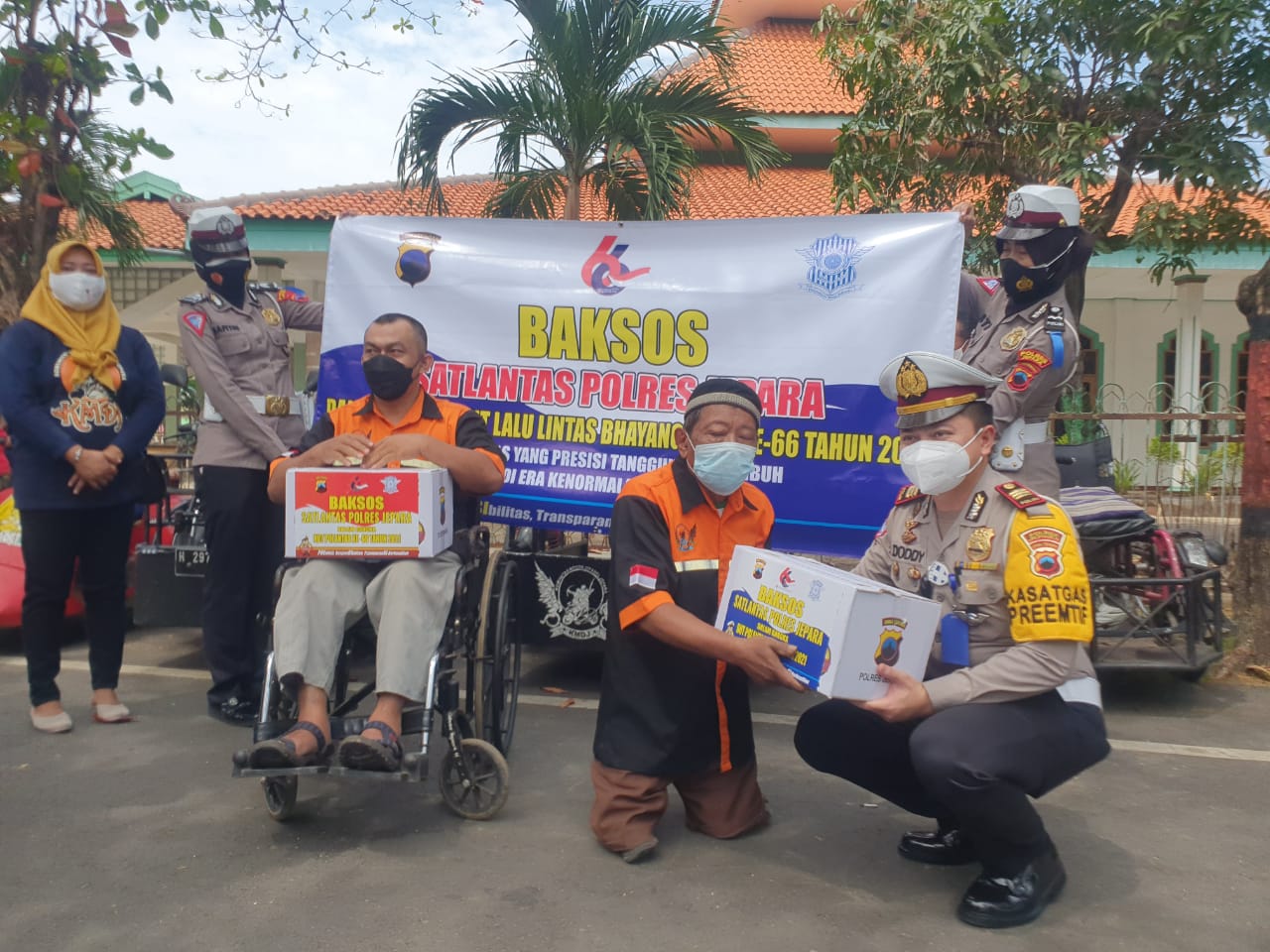 Kapolres Jepara AKBP Warsono melalui Kasat Lantas, AKP Doddy Triantoro, mengatakan, kegiatan bakti sosial ini merupakan salah satu bentuk kepedulian kepada warga untuk meringankan beban di tengah wabah pandemi Covid-19.