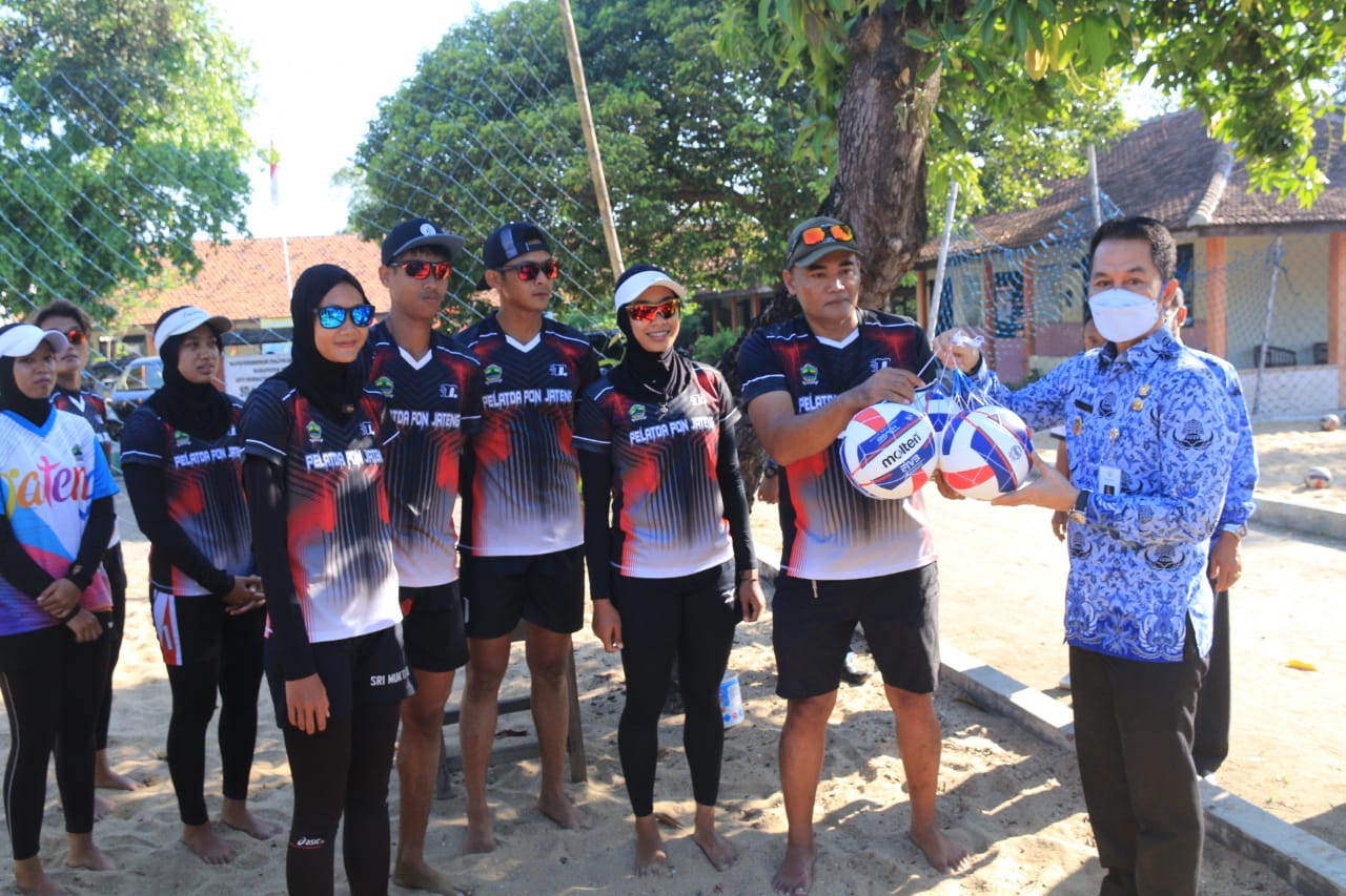 KlikFakta.com, KUDUS – Dalam rangka menghadapi Pekan Olahraga Nasional (PON) yang akan diselenggarakan di kota Jayapura, Papua, Atlet voli pantai kabupaten Kudus mematangkan persiapan dengan latihan bersama di lapangan voli Ivojo desa ngembalrejo, Jumat (17/9). Latihan tersebut turut disaksikan Bupati Kudus H.M Hartopo bersama Kepala Disdikpora, dan Pelatih Achsin Rokhis.