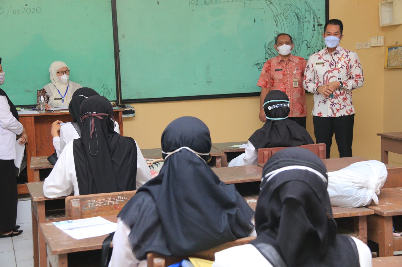 KlikFakta.com, KUDUS – Pelaksanaan ujian seleksi Pegawai Pemerintah dengan Perjanjian Kontrak (P3K) guru tahun 2021 digelar di SMAN 2 Kudus, Kecamatan Kota, Kabupaten Kudus. Dalam pelaksanaan ujian tersebut, Bupati Kudus, H.M. Hartopo didampingi Asisten administrasi umum, Inspektur Kab.Kudus, Plt.Kepala BKPP Kudus, dan Kepala Disdikpora Kudus datang ke lokasi untuk melakukan peninjauan, Rabu (15/9/2021).