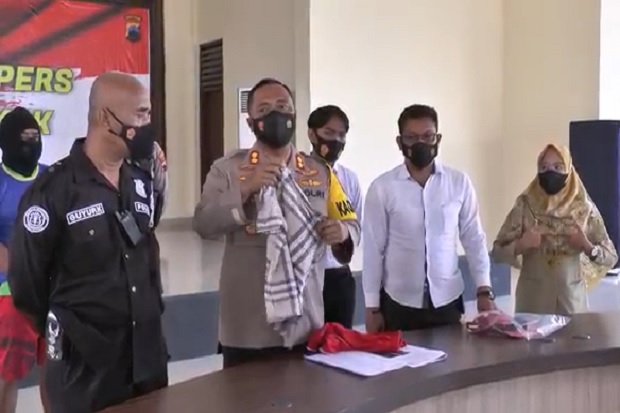 | Polisi menunjukkan barang bukti pencabulan yang dilakukan oleh tersangka Lulut Kusmiyanti |
