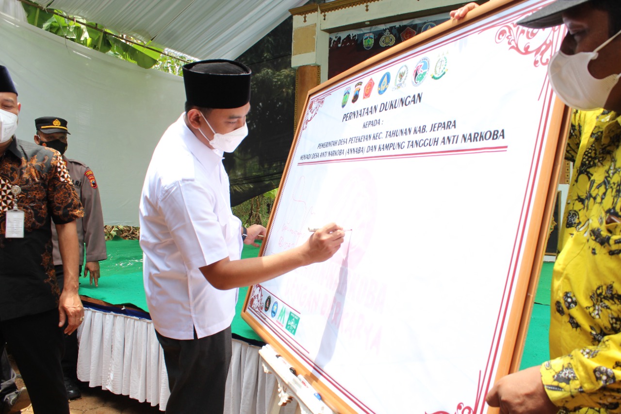 “Saya harap seluruh masyarakat di Kabupaten Jepara ini turut mengikuti seperti yang dilakukan oleh warga Desa Petekeyan untuk mencanangkan desa anti Narkoba sebagai salah satu upaya mencegah penyalahgunaan narkotika dan obat-obatan terlarang serta kita buat kegiatan atau pendidikan bagi generasi muda yang produktif sehingga tidak menyentuh Narkoba dengan harapan nantinya bisa meningkatkan kemajuan serta potensi yang luar biasa bagi generasi muda di Kabupaten Jepara,” kata Bupati.