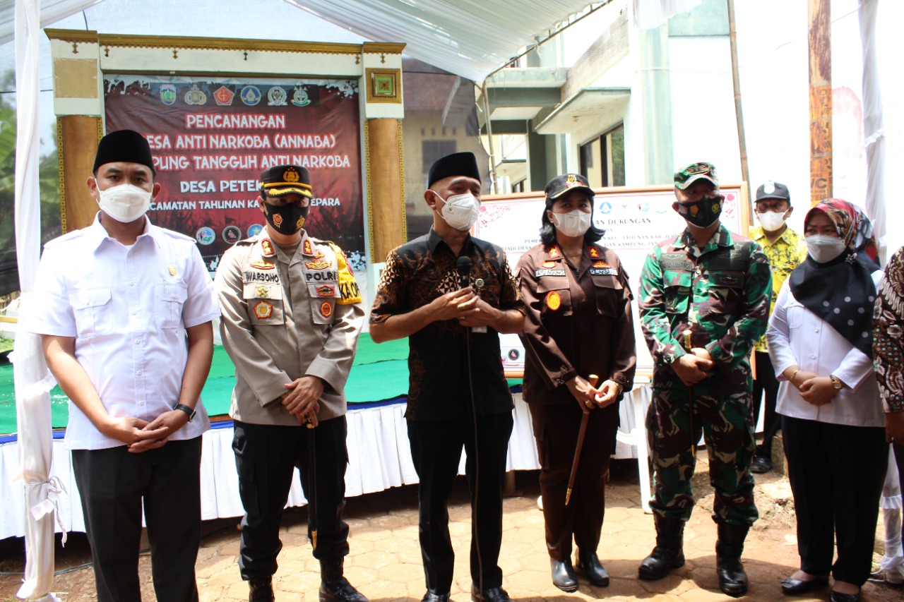 Dalam sambutan Bupati Jepara Dian Kristiandi menyampaikan apresiasi yang tinggi kepada semua pihak utamanya kepada seluruh masyarakat Desa Petekeyan yang turut peduli dalam menghadapi bahaya laten dari penyalahgunaan narkotika dan obat-obatan terlarang (narkoba).