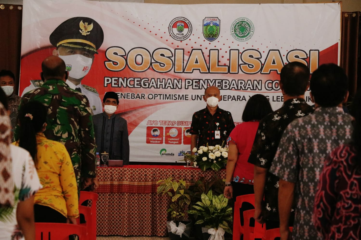 Ketua FKUB Jepara KH Mashudi menekankan kerukunan antar umat beragama. Saat pandemi ini, sangat dibutuhkan toleransi dan semangat gotong-royong. Jadikan perbedaan atau keberagaan ini sebagai kekuatan yang besar untuk pencegahan Covid-19.