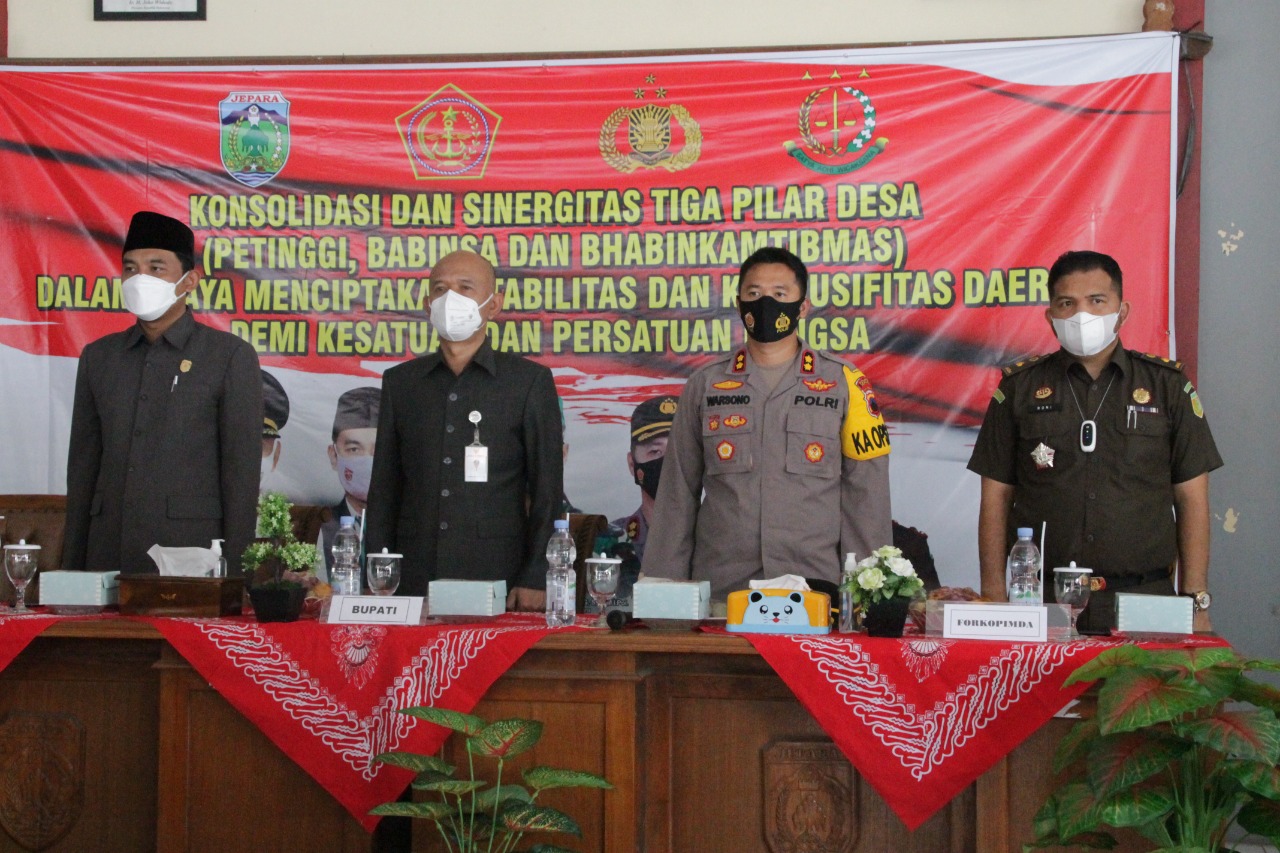Tiga pilar desa terdiri dari petinggi,lurah, Babinsa dan Bhabinkamtibmas. Apel dan pengarahan ini dilakukan untuk memastikan kondusifitas daerah Jepara selama natal dan menjelang pergantian tahun ini.