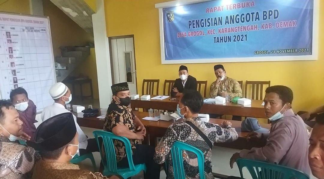 Klikfakta.com, Demak – Bertempat di Balai Desa Grogol Kecamatan Karangtengah Kabupaten Demak pada hari Kamis tanggal 24 November 2021, telah dilaksanakan acara pengisian anggota BPD (Badan Permusyawaratan Desa) Desa Grogol periode masa bakti tahun 2021.