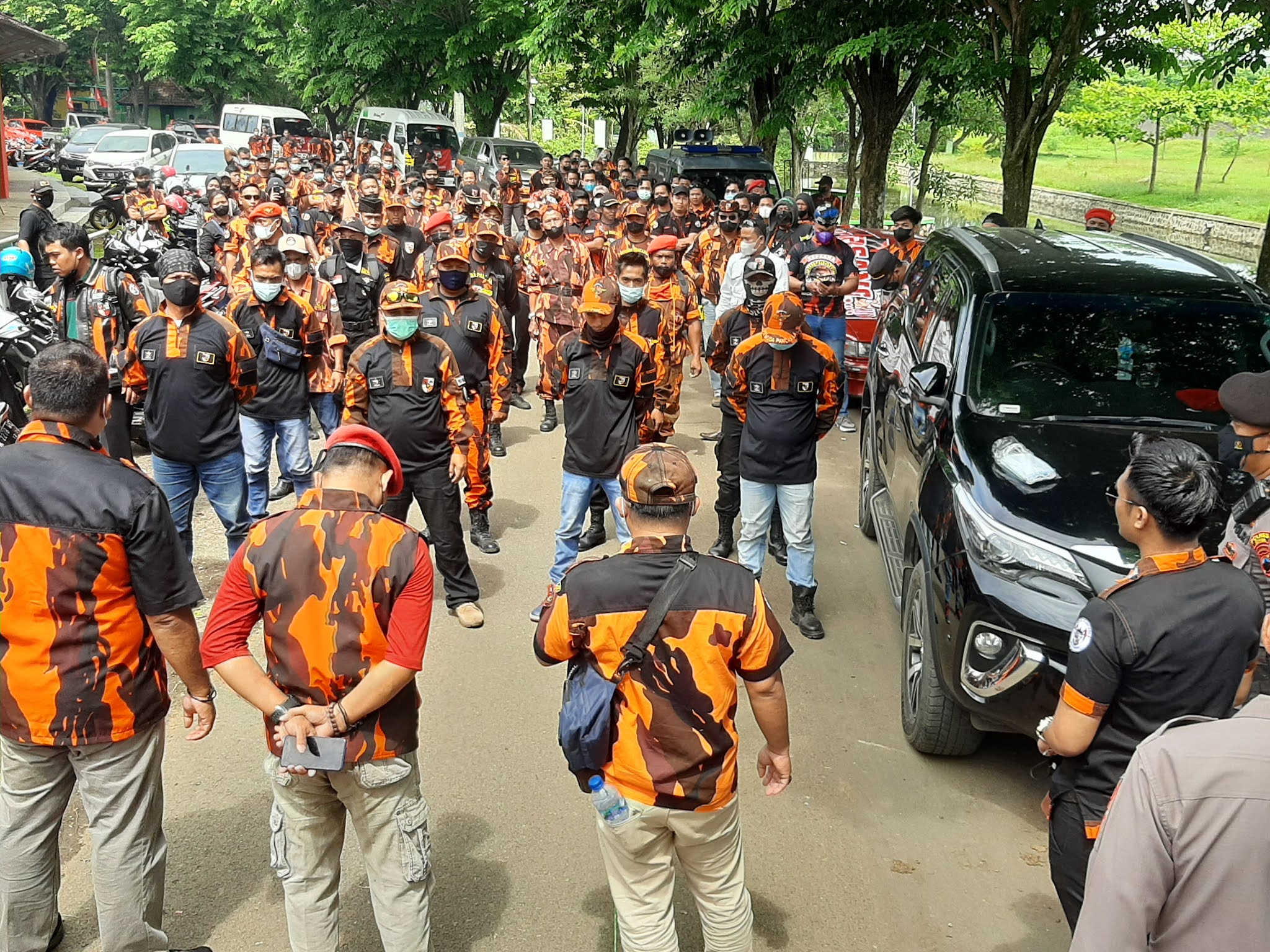 Massa ormas PP Jepara lakukan Longmarch dari GBK menuju gedung DPRD Jepara. |