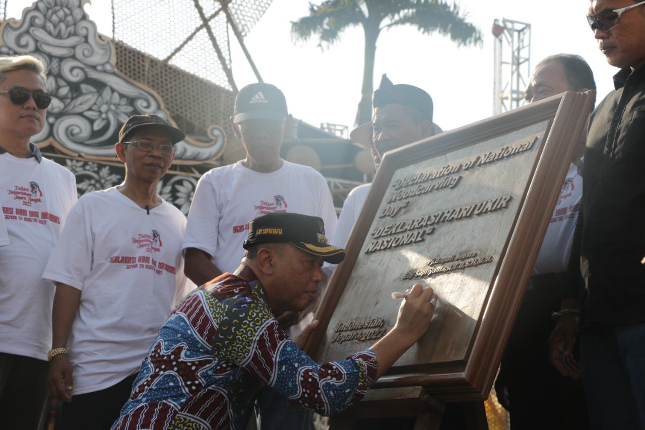 Dari sebuah panggung pertunjukan Festival Kemerdekaan Jepara Bangkit, momen deklarasi Hari Ukir Nasional digemakan oleh semua pemangku kepentingan setempat. Mulai dari unsur Forkopimda, pengusaha, pengurus asosiasi, seniman ataupun pelestasi seni ukir, budayawan, akedemisi, pelajar, hingga masyarakat. “Mari kita jadikan moementum ini sebagai ikhtiar bersama dmei lestarinya seni ukir Jepara,” ujar Bupati.