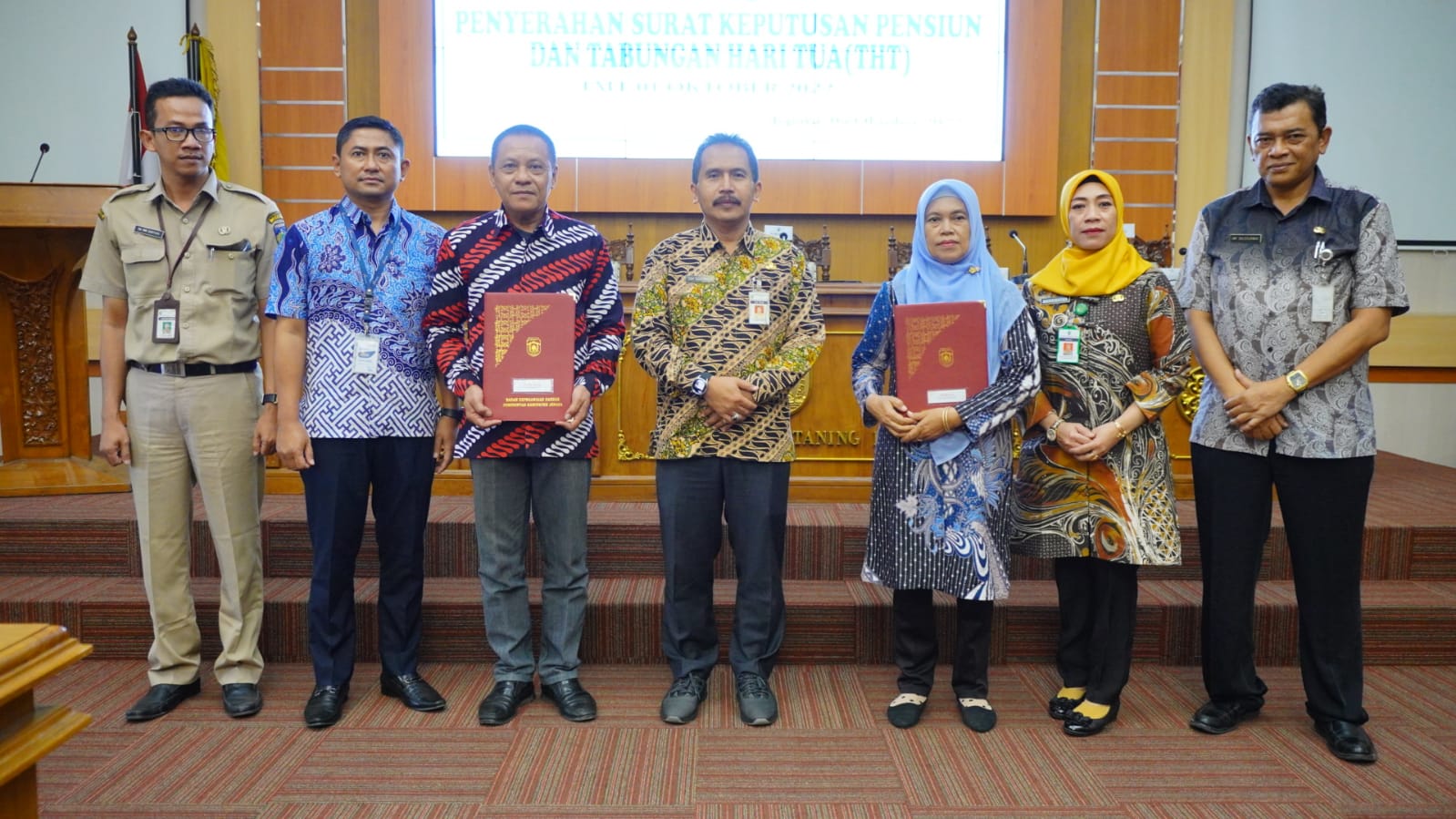 KlikFakta.com, JEPARA – Mewakili Pj. Bupati Jepara Edy Supriyanta, Sekretaris Daerah Jepara Edy Sujatmiko menyerahkan Surat Keputusan (SK) pensiun kepada 33 Aparatur Sipil Negara (ASN) yang memasuki masa purna tugas terhitung mulai tanggal (TMT) 1 Oktober 2022. Acara dilaksanakan di Gedung Shima, Senin (3/10/2022).