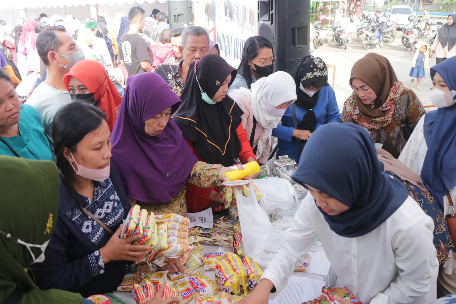 Antusiasme masyarakat sangat tinggi hingga belum genap dua jam seluruh bahan pangan yang dijual ludes dibeli.