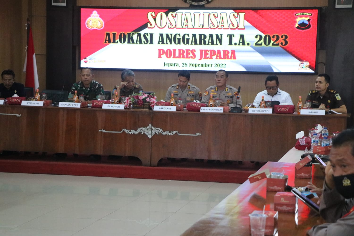 Kegiatan sosialisasi anggaran dilaksanakan di Aula Endra Dharmalaksana Mapolres Jepara, Senin (28/11/2022) siang.