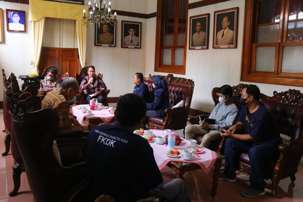 KlikFakta.com, KUDUS – Bupati Kudus akan melibatkan Forum Komunikasi Disabilitas Kudus (FKDK) dalam pembentukan Peraturan Bupati (perbup) terkait hak penyandang disabilitas. Hal tersebut diungkapnya setelah menerima audiensi FKDK di Pendapa Kabupaten Kudus, Selasa (1/11).