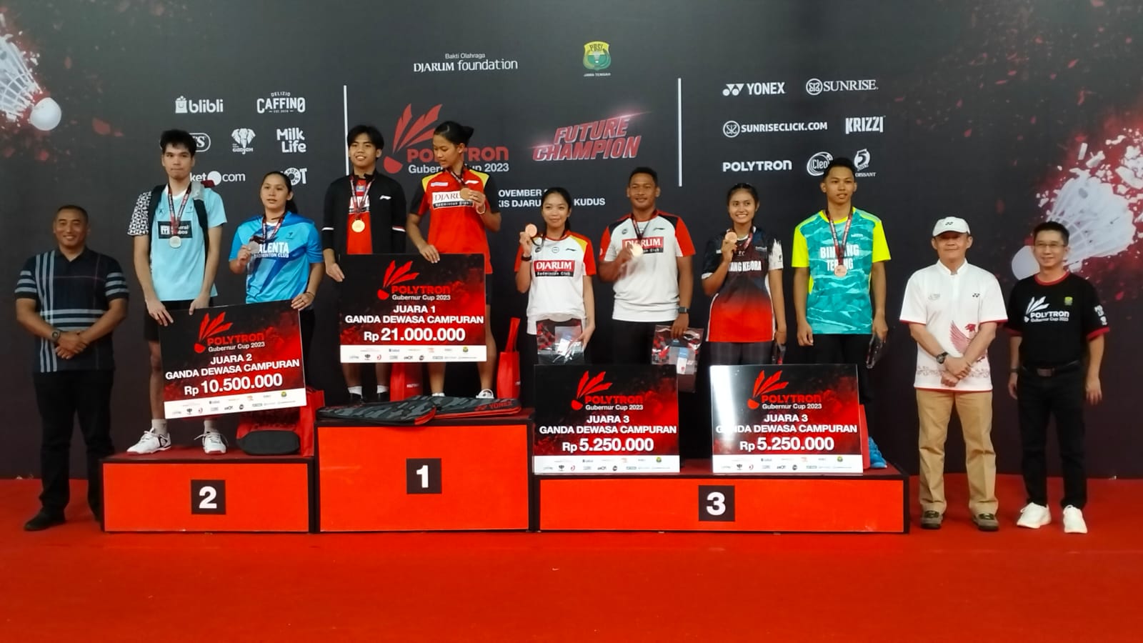 Sebagai informasi, Partai final Polytron Gubernur Cup 2023 yang didukung penuh oleh Bakti Olahraga Djarum Foundation ini mempertandingkan 23 kategori dari enam kelompok usia, yakni Usia Dini U-11, Anak U-13, Pemula U-15, Remaja U-17, Taruna U-19, dan Dewasa. Berikut daftar para pemenang: