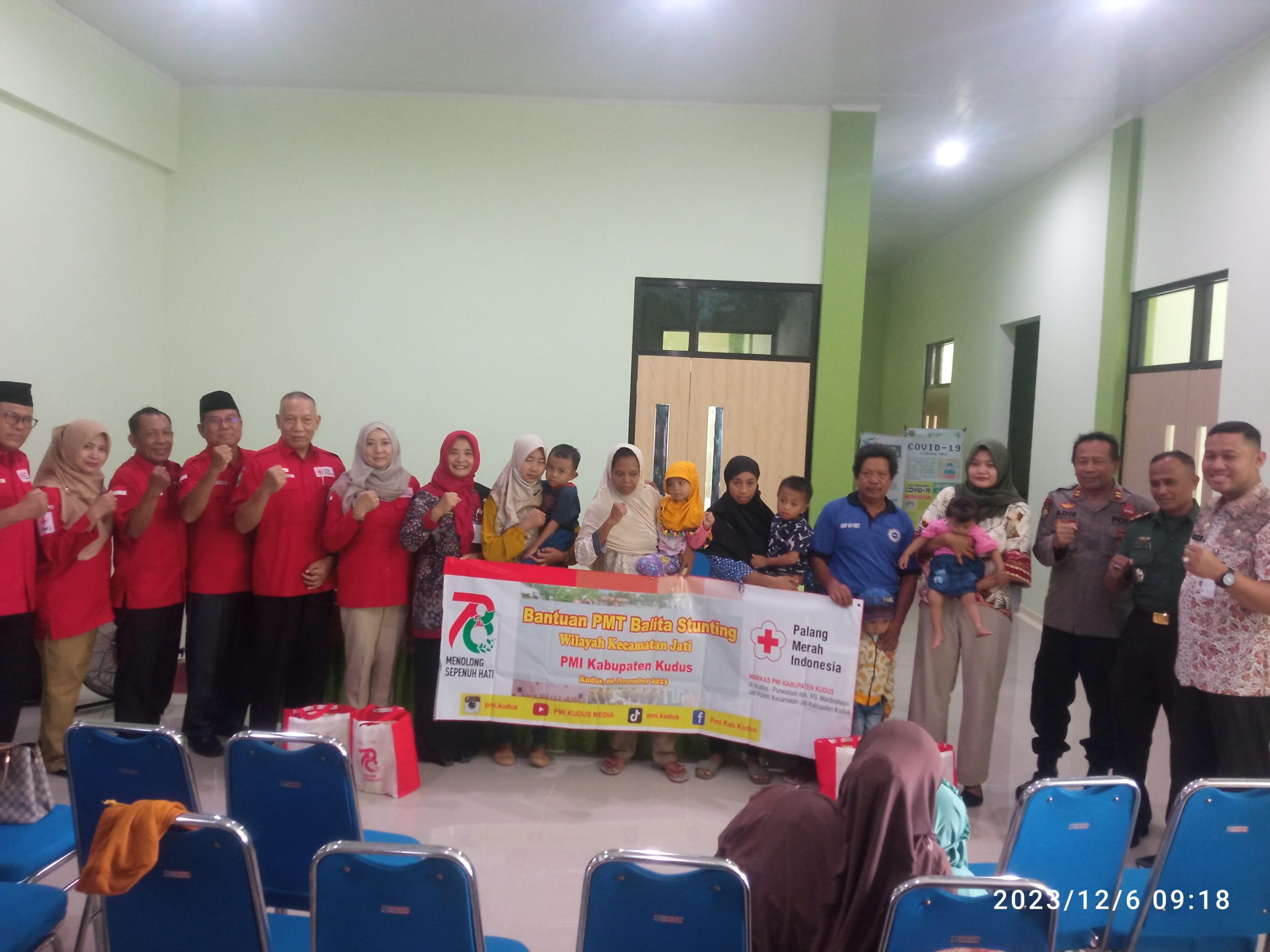 86 paket PMT yang diberikan kepada balita stunting diberikan oleh PMI cabang Kudus dengan menyalurkannya di wilayah kerja UPTD Puskesmas Jati. Paket PMT tersebut terdiri dari minyak goreng, gula, biskuit, dan susu.