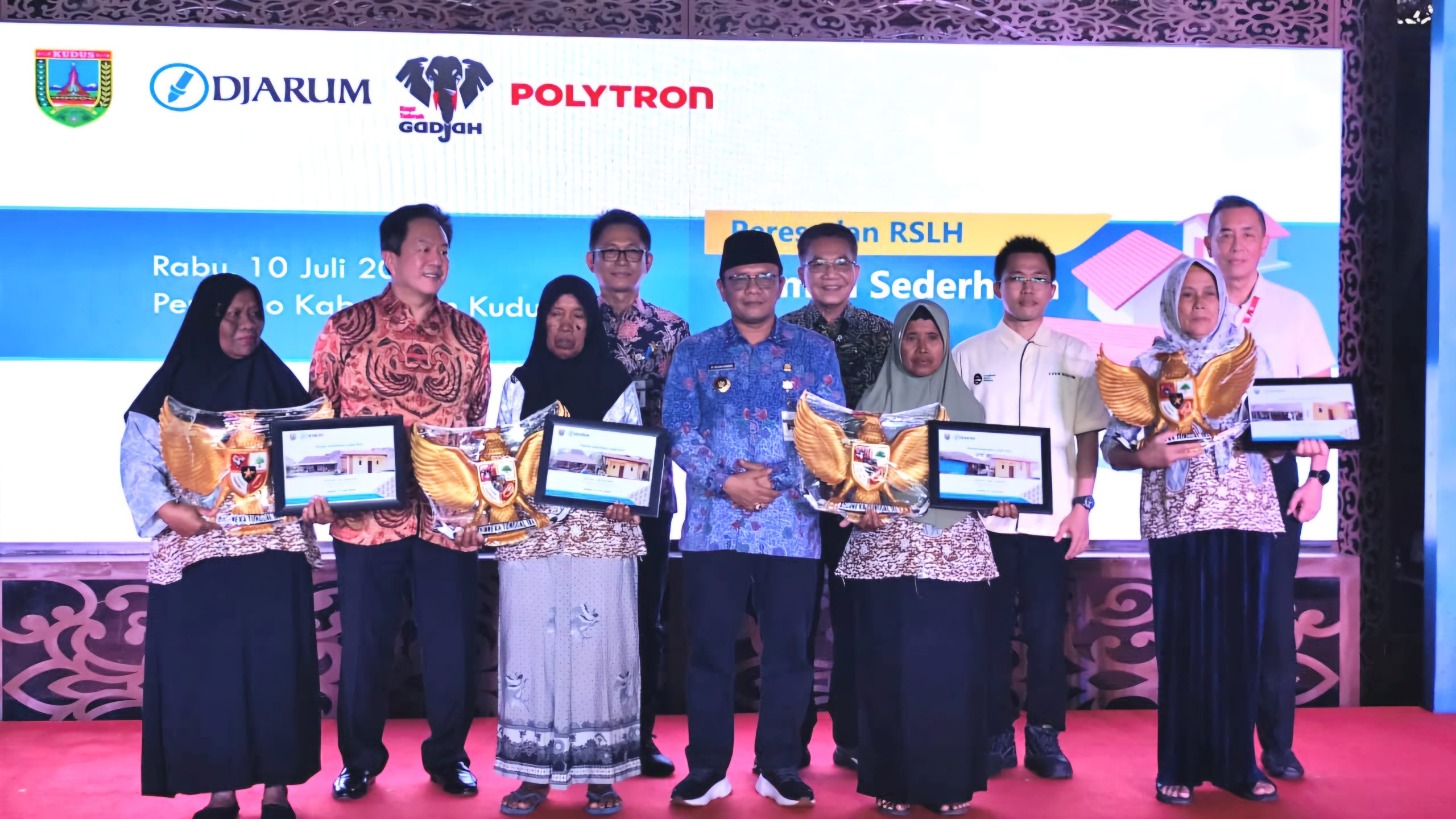 Seremoni serah terima simbolis dari PT Djarum kepada para penerima bantuan RSLH berlangsung pada Rabu (10/7), bertempat di Pendopo Kudus.