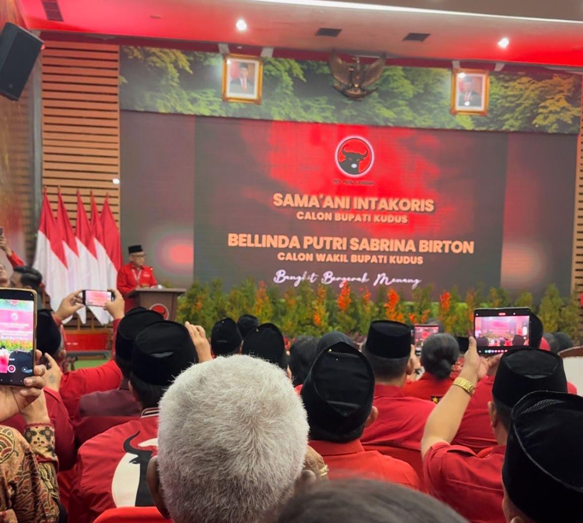 KlikFakta.com, KUDUS – Dewan Pimpinan Pusat (DPP) Partai Demokrasi Indonesia Perjuangan (PDIP) resmi merekomendasikan pasangan Sam’ani Intakoris dan Bellinda Putri Sabrina Birton untuk maju di Pilkada Kudus 2024.