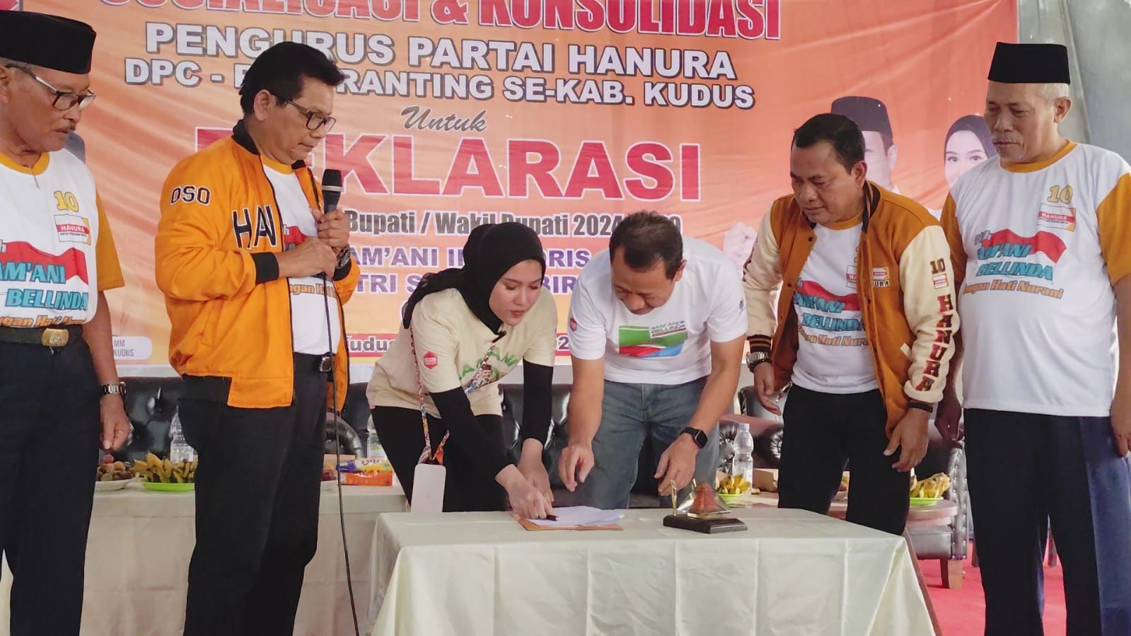 Ketua DPC Partai Hanura Kudus, M Sutriyono mengatakan, deklarasi yang dilakukan mempertegas bahwa Hanura mendukung penuh Samani-Bellinda Putri untuk memenangkan Pilkada Kudus 2024.