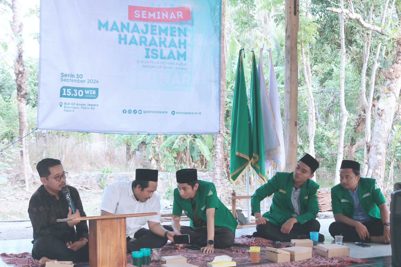 KlikFakta.com, JEPARA – Pimpinan Cabang GP Ansor Jepara bekerjasama dengan program studi Manajemen Dakwah (MD) Institut Agama Islam Negeri (IAIN) Kudus dalam rangkaian seminar “Manajemen Kharokah Islam”.