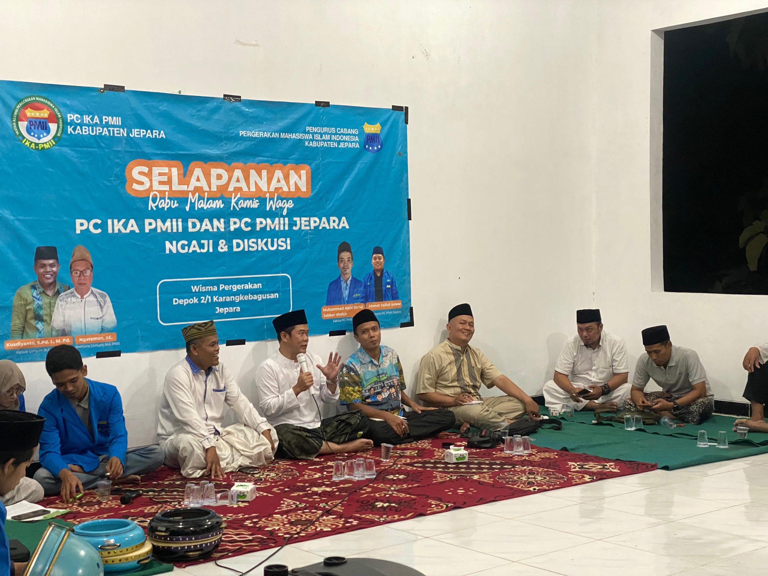 KlikFakta.com, JEPARA – Ketua DPRD Jepara, Agus Sutisna, hadir sebagai narasumber dalam diskusi yang diadakan oleh PC IKA PMII Kabupaten Jepara, yang rutin dilaksanakan pada setiap hari Rabu Wage.