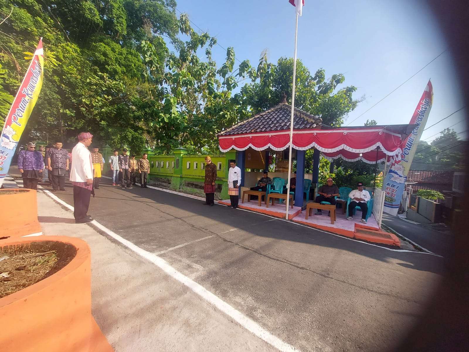 Sehari sebelumnya, pos ronda dipasang tiang bendera besi standar lapangan upacara, dihias dengan pernak-pernik merah putih. Upacara dihadiri ratusan warga, termasuk beberapa perangkat desa dan warga RT sekitar.