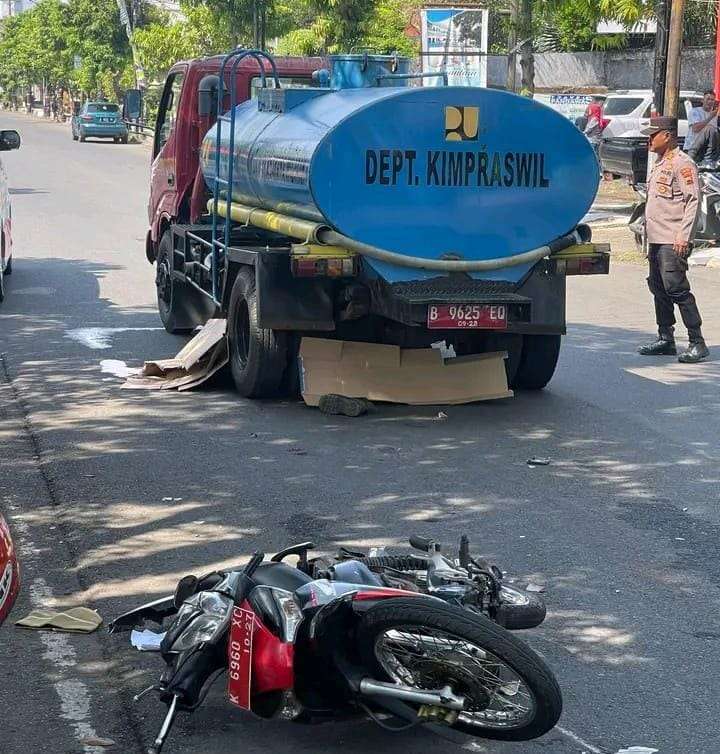 KlikFakta.com, KUDUS – Kecelakaan lalu lintas terjadi di ruas Jalan Jenderal Sudirman, tepat di depan Stadion Kamal Junaedi, Kelurahan Demaan, Kecamatan Jepara Kota, Kamis (25/9) sekitar pukul 09.00 WIB. Insiden ini melibatkan truk Tangki Pengangkut Air Toyota Dyna dengan sepeda motor(red-SPM) Honda Supra X125, dan mengakibatkan satu orang meninggal dunia di tempat.